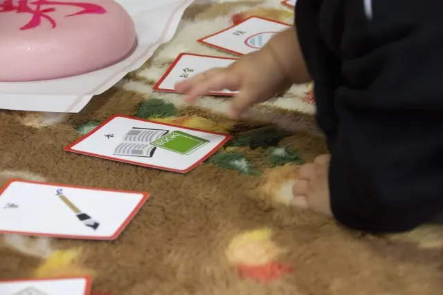 タンカーユーエーでは一般的に、赤飯、墨と筆、お金、本、そろばん、ハサミなどの品々を子どもの前に並べ、最初に手に取ったものでその子の将来性を占うのです。
